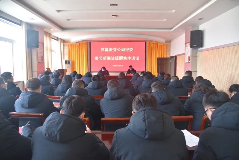 1月25日下午,苏垦麦芽公司纪委召开2021年春节前廉洁提醒集体谈话会议,会议由纪委书记孟庆东主持,公司的领导班子和中层助理以上管理人员、重点岗位人员参加会议。