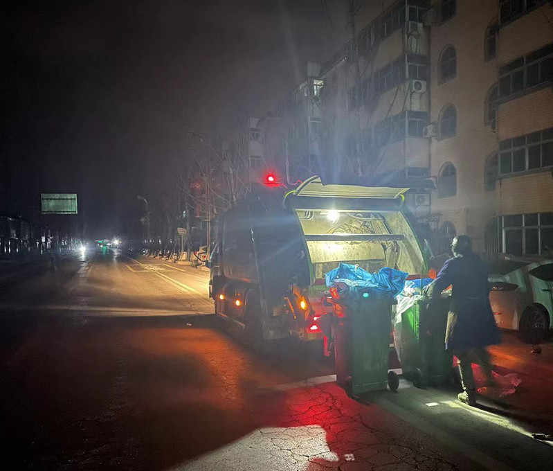 作为农场人,你或许会在“三夏”“三秋”农忙时节,见到新洋凌晨三四点的样子,但你有在零下四五度的寒冬时节,在这个时间段见过新洋街头的样子吗?有这么一个人,不论寒冬酷暑,不论刮风下雨抑或冰霜寒雪,为了让人们能睁眼就迎接干净环境,他连续五年、全年365天无休,每天都是这个时间段开始工作,用汗水拖出了一条干净整洁的清运路,他就是新洋农场社区环卫车驾驶员黄寅。