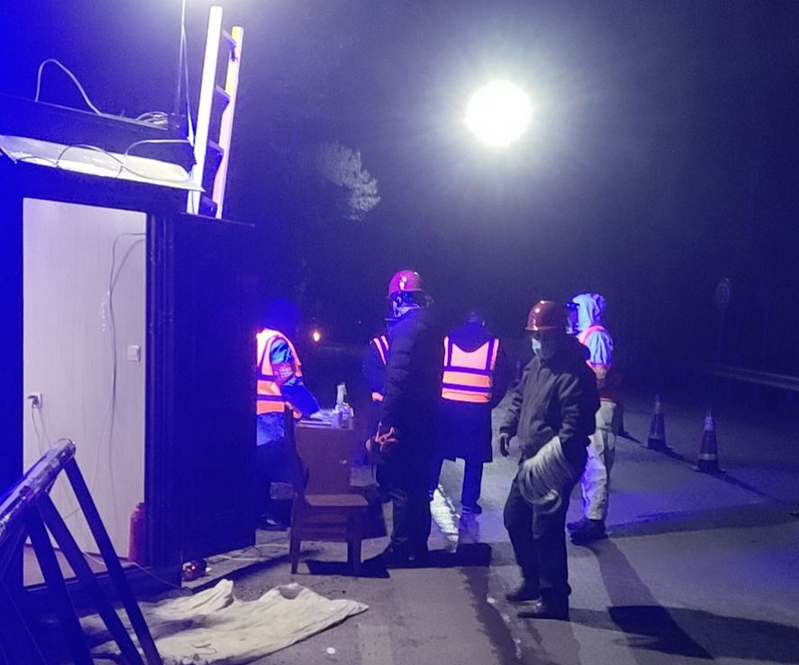 经过2个多小时的应急处置、奔赴、安装。给夜幕下的防疫检查点,更加安全、明亮。