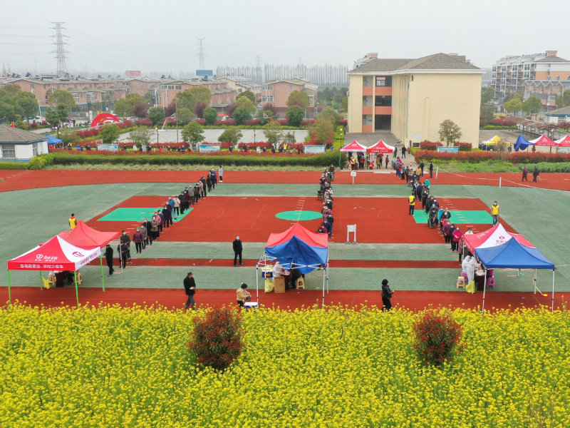 测温、扫码、登记、等侯、采样,检测现场秩序井然,当天完成境内居民3296人核酸检测采样,实现了全员核酸检测的目标任务。