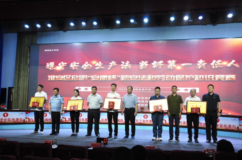 6月25日,在由淮安区安委办、总工会联合举办的以“遵守安全生产法 当好第一责任人”为主题的欣明“安康杯”新安法和劳动保护知识竞赛决赛阶段比赛中,白马湖代表队三名队员成功晋级决赛,并获得三等奖。