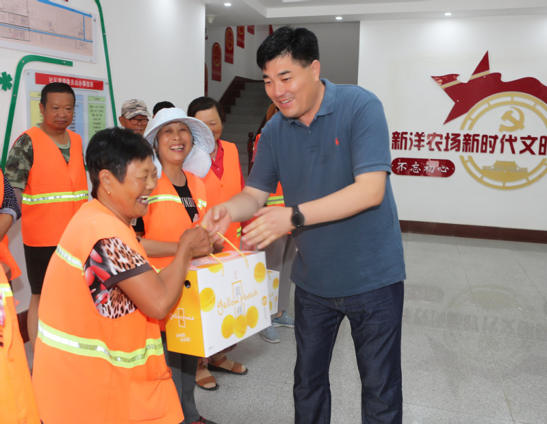 本次活动给场域内一线职工发放了近400份慰问品。领导的问候和赞誉,给一线职工送去了缕缕清凉,同时也极大鼓舞了一线职工的士气,激发广大职工爱岗敬业的热情,促进新洋高质量发展,以优异成绩献礼建垦、建场七十周年。