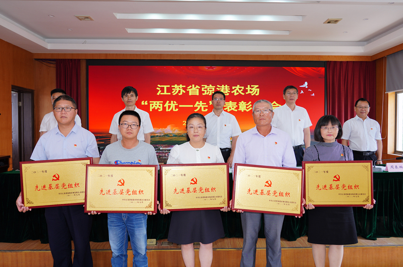 农场公司副总经理周春柏宣读了《江苏农垦表彰优秀共产党员的决定》和《农场公司党委2021年度“两优一先”表彰决定》。公司领导分别为受表彰的优秀共产党员、优秀党务工作者、先进基层党组织颁发了奖牌、证书。