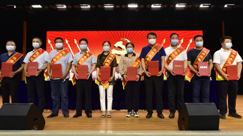 为热烈庆祝中国共产党成立101周年,全面回顾党团结带领人民不懈奋斗的光辉历程,传承弘扬党的光荣传统和优良作风,7月1日上午,白马湖农场公司在职工会堂以“奋进新征程 建功新时代”为主题,召开庆祝建党101周年大会,开展重温入党誓词、颁发“光荣在党50年”纪念章、表彰“两优一先”和党委书记讲党课等一系列庆祝活动,引导号召全体党员以对党忠诚的一以贯之、从头开始的归零心态、为人民服务的一心一意向党的101岁生日献礼,以实际行动和优异成绩迎接党的二十大胜利召开。