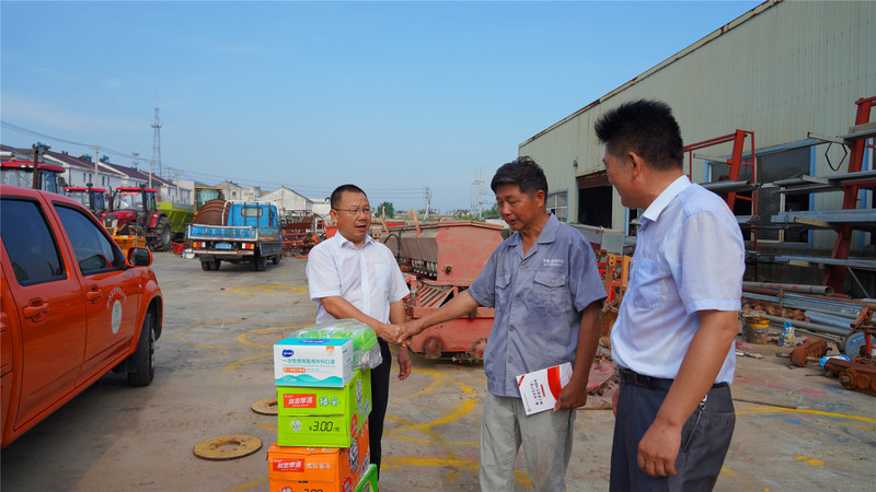 近日,弶港农场公司持续高温、天气炎热。为进一步保障职工职业健康安全,7月13日一大早,农场公司党委领导班子成员带领相关单位负责人对坚守在疫情防控、安全生产、工程项目建设等一线的工作人员,以及对场域内18家企业开展“送清凉”活动,看望慰问高温下坚守岗位、辛勤工作的一线工作者,为他们送去饮料、洗手液、口罩等清凉消暑物品及新《安全生产法》学习读本。慰问组对奋战在一线的广大职工表示亲切的问候和关怀,再三叮嘱要合理安排作息时间,尽量避免高温作业,确保身体健康和工作安全,同时要加强疫情防控工作,做好职工健康管理,加强卫生环境消毒。