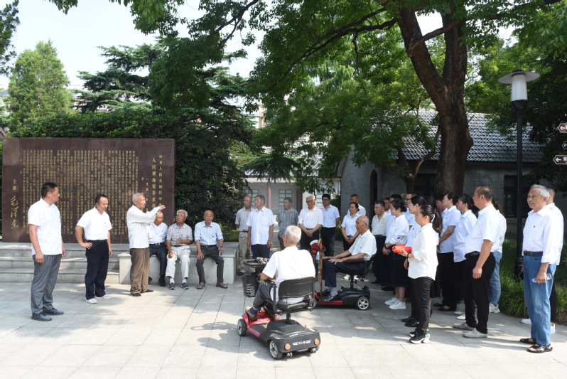 据悉,自七月以来,已经九旬高龄的姚少林、吴锦生、胡福生等老军垦,他们以陈列馆为背景,用各自的语言,声情并茂的为党团员干部和青少年们,讲述了他当年为了对美好家园建设的梦想,与天斗,与地斗,克服了重重困难的考验,义无反顾进行“生根、立足、建场”的历史。同时农场各支部也纷纷让支部的老军垦们,走上支部的讲堂,讲述建场历史,讲述精神传承,他们留给后人的军垦精神,是农场人最为宝贵的精神财富,值得我们大家好好地发扬传承,让红色文化和军垦基因在淮海这块大地上代代相传,永不停息。图为在毛泽东主席命令碑文前老军垦在讲先辈们开垦农场土地资源的故事。