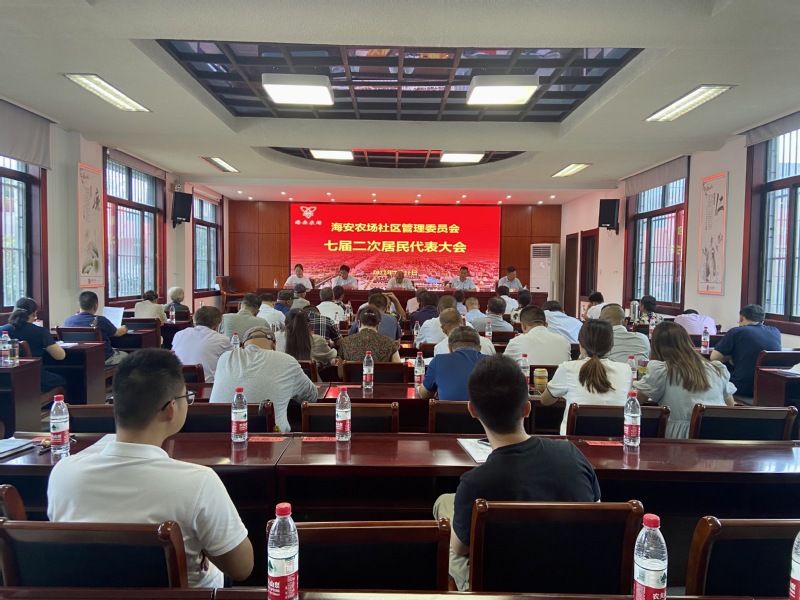 7月21日,海安农场社区召开七届二次居民代表大会,居民代表、列席代表共50余人参加会议。会议由农场公司党委委员、副总经理、社管会副主任张伟栋主持。