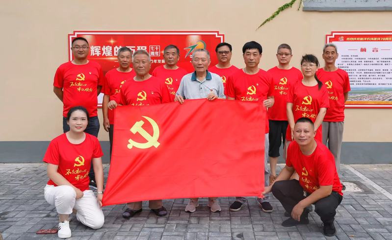 活动中,党员统一身穿红色带有党徽的服装,在党旗的引领下,迈着整齐的步伐先后参观了建场70周年成果展、场史陈列馆等。