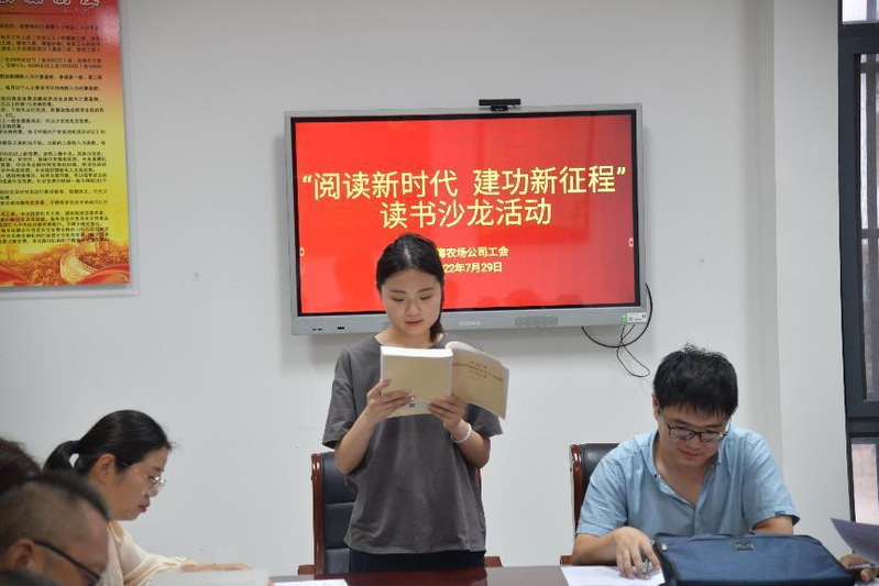 为紧扣迎接宣传贯彻党的二十大这条主线,结合“中国梦·劳动美——喜迎二十大 建功新时代”主题宣传教育,农场公司工会以“阅读新时代 建功新征程”主题,广泛开展主题读物和主题阅读推广活动。7月29日上午,淮海农场公司工会在新时代文化活动中心一楼会议室开展读书沙龙活动,各基层工会干事、居委会主任、青年员工代表参加此次活动,大家一起交流读书心得,畅谈读书感言。