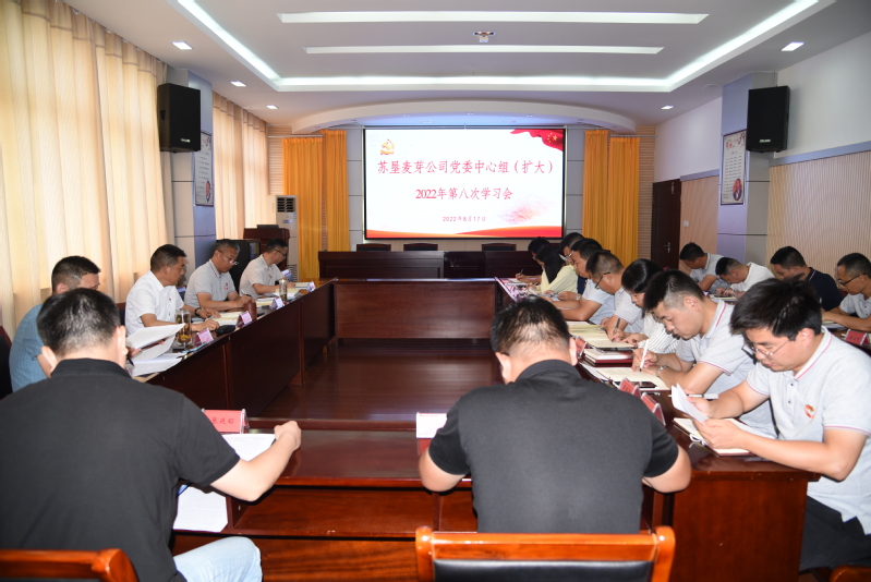 8月17日下午,苏垦麦芽公司召开2022年党委中心组第八次学习会,党委书记、董事长郭世平主持学习会,公司党委理论学习中心组成员,中层助理以上党员参加会议。