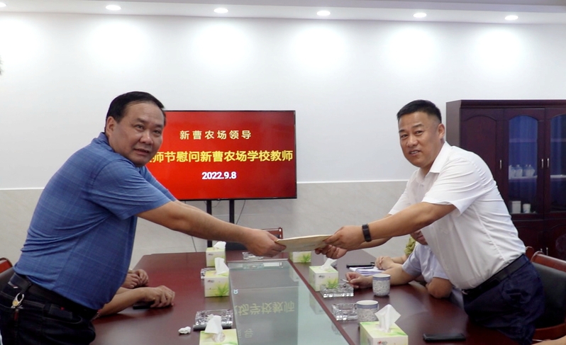 时值全国第三十八个教师节来临之际,9月10日上午,新曹农场有限公司工会主席及党委工作部、工会、办公室相关负责人到新曹农场学校进行教师节慰问,向教职员工致以节日的祝福和崇高的敬意。