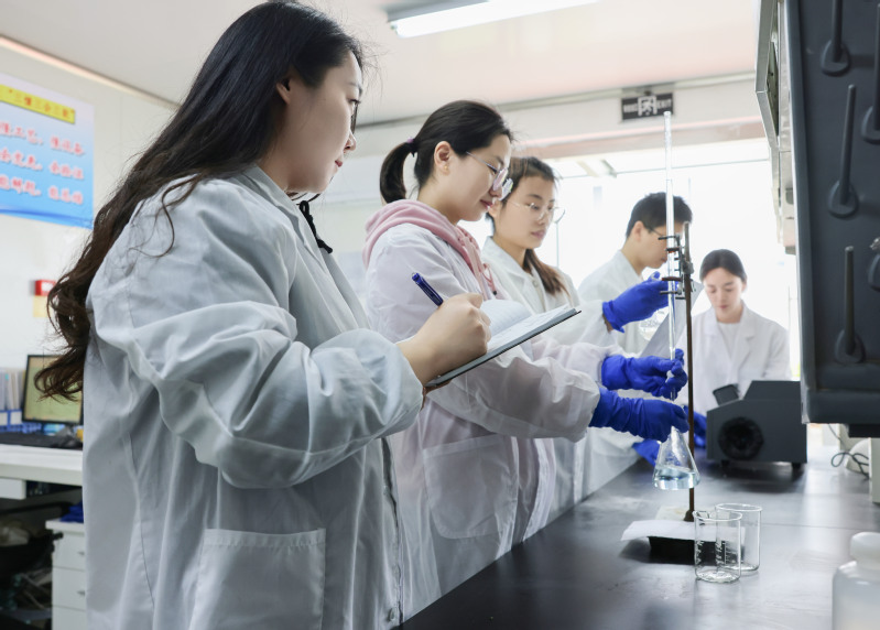 今年以来,勤奋药业聚焦中链甘油三酯、赖氨酸、柠檬酸钠等核心产品开展技术攻坚。图为研发中心团队正在实验室研究硫酸钾原料药产品中起始物料的亚硫酸盐检测方法学开发。