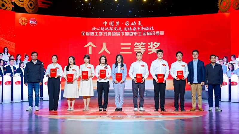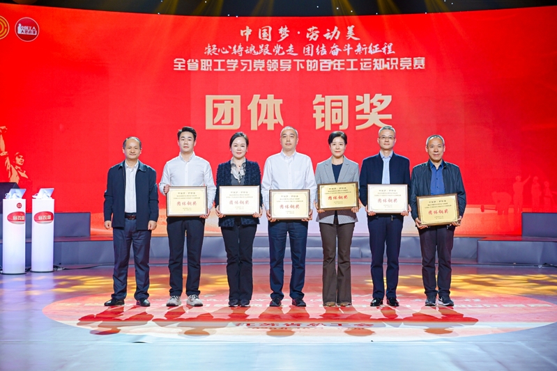 10月24日,由江苏省总工会举办的“中国梦·劳动美——凝心铸魂跟党走,团结奋斗新征程”全省职工学习党领导下的百年工运知识竞赛活动在江苏省广播电视总台1号演播大厅举行,来自全省各地市和产业工会的23支代表队、69名精英选手参与比赛。上午的初赛中,集团代表队的栾薇、王淑玉、黄昊之3名队员克服备赛人员分散、备赛时间短等困难,在初赛三轮比拼中越战越勇,以团体第五名的成绩杀入下午总决赛,决赛中队员们团结拼搏、稳定发挥,最终获得1名个人二等奖、2名个人三等奖和团体铜奖的好成绩。