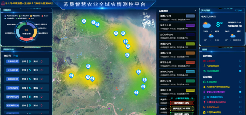 苏垦农发以保障粮食安全为核心,坚决贯彻落实集团战略部署,建立党委抓总、科技信息部统筹推进的工作机制,集成应用低空农业、无人化装备和人工智能技术,构建智慧农业“一张图”“一片云”“一张网”基础平台,开发应用无人值守巡田系统、全域“四情”监测系统和智慧灌溉系统,推广精准变量施肥、卫星平地、北斗导航辅助驾驶等先进装备,多维度提升农业生产效率与管理水平,形成可复制、可推广的江苏农垦智慧农业集成解决方案。