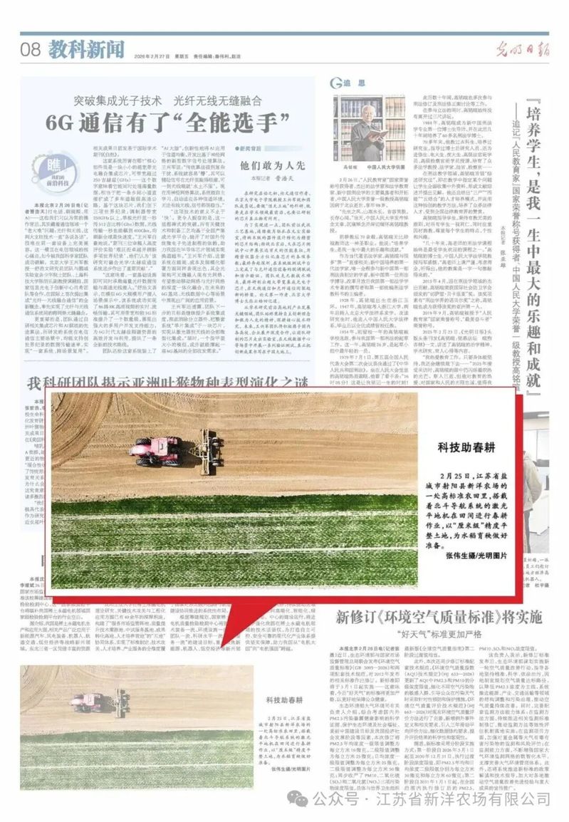 连日来,中央电视台、《经济日报》《光明日报》等多家中央主流媒体将目光投向江苏农垦新洋农场春耕春管一线,集中报道农场依托现代科技赋能农业生产的生动实践,展现新质生产力在田间地头焕发出的蓬勃活力。