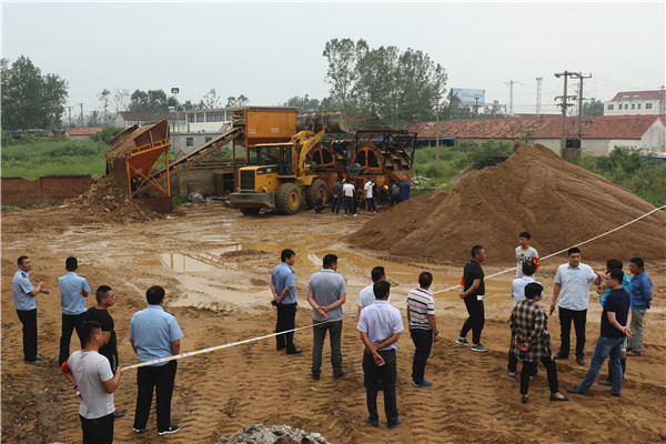 为严厉打击非法洗砂矿行为,切实保护自然生态环境,9月6日上午,在海州区公安分局、环保局、国土局、水利局、市场监督管理局等部门的大力支持下,岗埠农场有限公司安委会、社区、派出所和相关生产区、部门联合开展打击非法洗砂清理取缔专项行动。农场公司总经理助理王国亮亲自带队,现场督导整治行动。