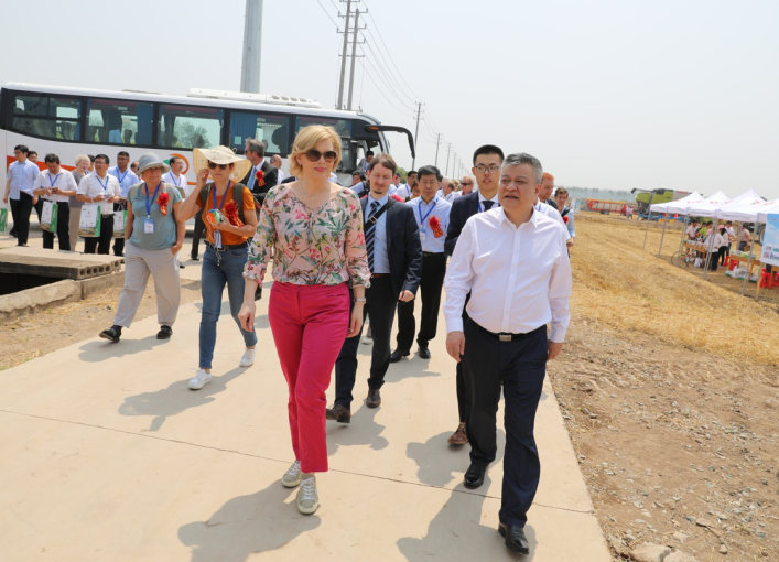 仲夏时节、万物并秀,是收获美好、播种希望的时节。6月15日,中德作物生产与农业技术示范园第五届“田间日”活动在江苏省黄海农场有限公司开幕。江苏省副省长王江、德意志联邦食品与农业部部长尤利亚•戈洛克内尔出席开幕式并致辞。国家农业农村部国际合作司副巡视员王宏前、集团公司党委书记、董事长魏红军分别致辞,集团公司总经理、苏垦农发股份公司董事长胡兆辉主持开幕式,黄海农场有限公司党委书记、苏垦农发黄海分公司总经理、中德示范园主任贺在锐作项目介绍,项目合作企业代表发言。出席此次“田间日”的嘉宾还有:中德两国国家农业部门、德国驻华大使馆、德国驻上海领事馆、中德农业中心有关官员,中国工程院、江苏省农业农村厅、盐城市人民政府有关领导和专家、部分省市农机局、农机推广站代表、农业科研院校代表、家庭农场代表、项目合作商代表、集团公司和苏垦农发股份公司相关领导及黄海领导班子成员、中德示范园领导和专家以及中德媒体记者共400余人。