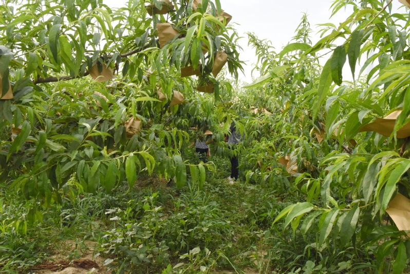 连日来,我们在淮海农场有限公司资源开发管理中心果园基地中看到,基地内的员工正在给即将成熟的桃子套上外套,一个个穿上了“外衣”的桃子在果树上显得格外扎眼。据悉,这也量农场果园基地提升水果产品质量和产量的一部分。