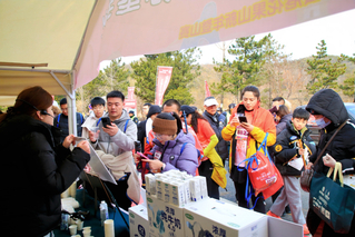 元旦期间,苏垦乳业以“营养陪伴,活力开年”为主题,在连云港展开了一场线上线下联动的品牌推广活动。图为苏垦乳业在花果山新年登山赛现场设立品牌推广补给站。