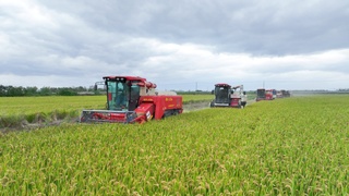 近日,随着连日阴雨天气的结束,苏垦农发淮海分公司各生产区迅速转入抢收状态,一台台满载着希望的收割机轰鸣着驶入稻田,将沉甸甸的稻穗尽数“揽入怀中”。