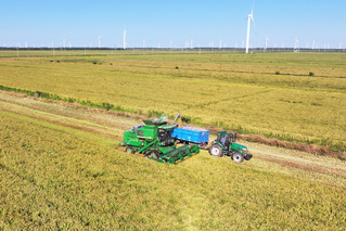 2025年10月10日,苏垦农发岗埠分公司正在抢收水稻。秋收时节,天气复杂多变,给秋收工作带来一定困难,岗埠分公司按照“成熟一块、收获一块”的原则,组织200多台收运机械,集中力量加紧进行机械抢收作业,确保成熟玉米、水稻等秋粮及时归仓。