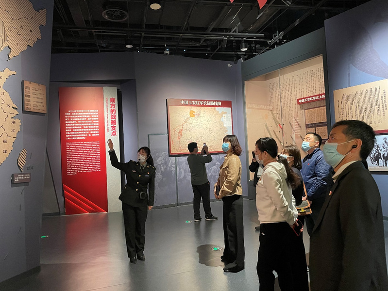不朽的军魂,永恒的激励。稍作休息后,下午大家共同赶赴盐城新四军纪念馆。紧跟解说员的步伐,大家依次参观学习了《治国精英》《将帅风采》《群星璀璨》《英烈千秋》四个陈展部分,随着展馆的切换,大家的心情也跟着跌宕起伏。初建时的新四军不仅要面对敌人的凶残杀戮,还要面对缺衣少食、武器简陋的现实情况,尽管如此,新四军凭借着铁军精神,坚守在敌后战场进行艰苦卓绝的抗日斗争,先后夺取了八滩战斗、陈家港战斗、阜宁战役等重大胜利,沉重打击了敌对势力。在炮火硝烟中,新四军将士用鲜血和生命铸就了新四军铁军精神“听党指挥的铁的坚定,报国为民的铁的担当,英勇顽强的铁的作风,执纪严明的铁的纪律”。