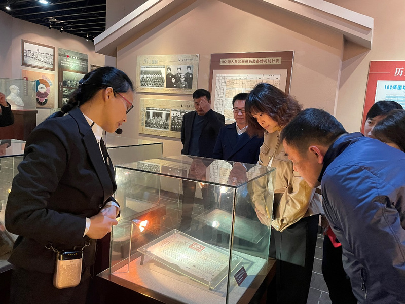 “这份由军委主席毛泽东签署的‘人民革命军事委员会命令’,是我们陈列馆的‘镇馆之宝’,这也是当年主席亲手签署的31份命令中,在全国现仅存这一份原件。”解说员指着第一展柜显眼处的毛泽东命令原件复印件,向大家介绍起“人民革命军事委员会命令”出台前后的历史史实,在这份命令的指引下,中国人民解放军长途跋涉,开赴黄海之滨、苏北灌溉总渠尾闸两岸,为开发国土资源、发展农垦事业做出了不朽贡献。大家也纷纷上前参观学习。