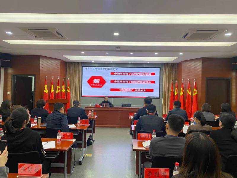 随后进行的专题党课《学党史 守初心 担使命》,从一大建党、抗美援朝、思想解放、从严治党等四个历史事件,将党的百年历史脉络进行了梳理,诠释了为什么要学党史、中国共产党为什么“能”、马克思主义为什么“行”、中国特色社会主义为什么“好”等基本道理。党组织书记进行会议总结,要求广大党员、干部从党的重大事件中汲取奋进前行的力量,学习先辈为了胜利,不惜奋斗到最后一口气的精神,抵制虚无主义、弘扬党史的浩然正气和必胜的志气。要珍惜现有的生活,通过学习提高政治站位和理论水平,不断提高综合素养,用正确的理论指导工作,以高标准严要求谋发展。