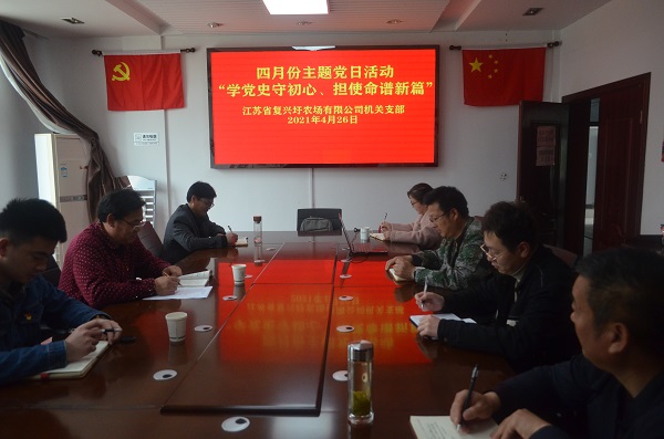 为深入推进党史学习教育工作,4月26日下午,农场公司机关党支部开展了“学党史守初心、担使命谱新篇”主题党日活动。活动期间,支部书记、组织委员分别带领大家全文学习了《论中国共产党史》中的《古田会议奠基的我军政治工作对我军生存发展起到了决定性作用》、《在纪念毛泽东同志诞辰一百二十周年座谈会上的讲话》和《总结党的历史经验,牢固树立“四个意识”》的三篇文章。通过学习讨论,从党史中汲取前进的力量,全体党员更加深刻地认识到时代赋予我们的职责使命,更加深刻地认识到我们肩负的时代重任,进一步激发全体党员的干事创业激情。大家纷纷表示要学好党史、中国革命史、社会主义发展史和改革开放史,牢记共产党人的初心,领悟共产党人的初心,用实际行动奋力谱写新时代共产党员勇担使命、永立时代潮头,奋力拼搏的新篇章。