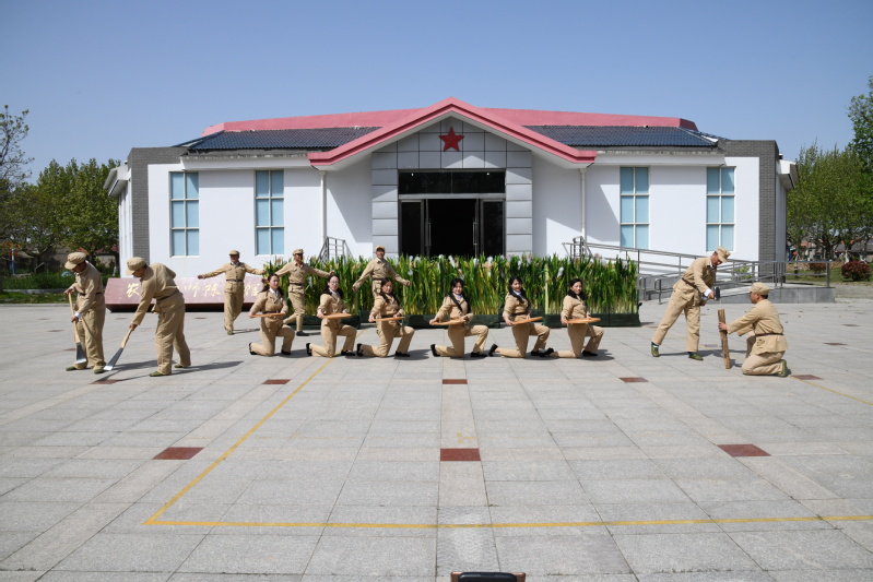 用一个个红色故事和生产场景串起为的“红色记忆”,在党史学习教育活动正在垦区深入开展的大背景下,更能在观众心中泛起阵阵涟漪,产生无限遐想。五一节假日前夕,淮海农场有限公司情景剧《奋斗的音符》20多名演编导人员,他们再一次汇聚在有着军垦光荣历史的农建四师陈列馆前,通过重温情景剧场景、再讲情景剧台词,让舞台效果再现的形式,在原农建四师师部的旧址上,铺开了一幅宏大的历史图卷,以此来歌颂我们的国家、我们的农垦,在中国共产党的领导下发生的翻天覆地的变化,并借此展示江苏农垦摇篮的地位,演绎新时代的淮海精神。