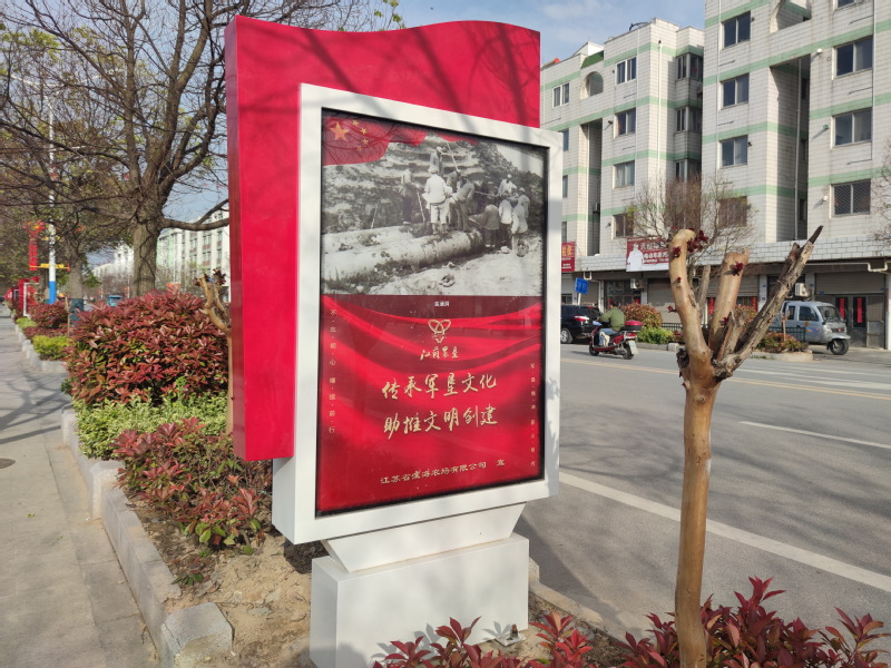 为“不忘初心,牢记使命”,在庆祝中国共产党成立100周年这一时刻,做好农场文明单位的创建工作,经过精心筹备、紧张施工,淮海农场有限公司淮海路两侧的路边绿化灯箱广告宣传栏正式落成。这些以庆祝中国共产党成立100周年和淮海军垦红色文化元素的宣传灯箱,掩映在路两旁的绿树之间,成为本已美丽无比的淮海路上,又增添了一道新的风景线。