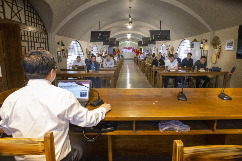 5月13日上午,苏垦南通公司37名中层党员干部围坐在“窑洞”里,认真聆听了公司党委书记、董事长、农发南通分公司总经理严忠讲授警示教育专题党课。