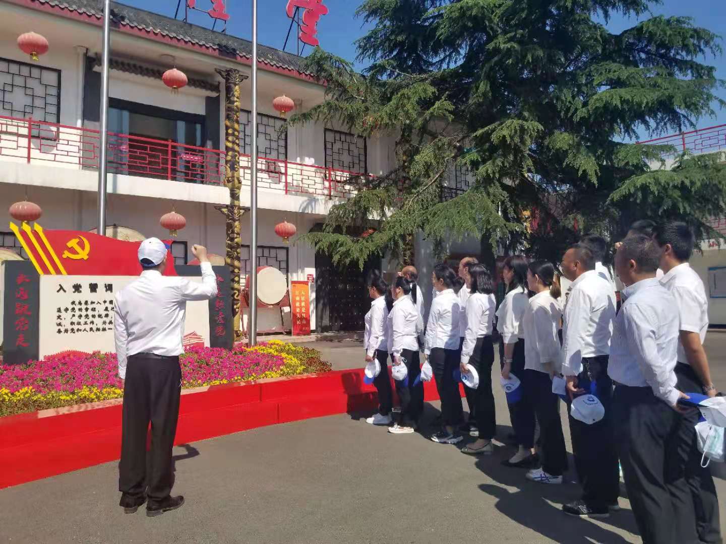 在马庄村文化礼堂前,公司全体党员向党旗庄严宣誓,重温入党初心,牢记党的教诲。铿锵的誓词,让党员们热血沸腾,仿佛重回当初加入党组织的那一刻,更加坚定了自己的理想信念和党性认识。