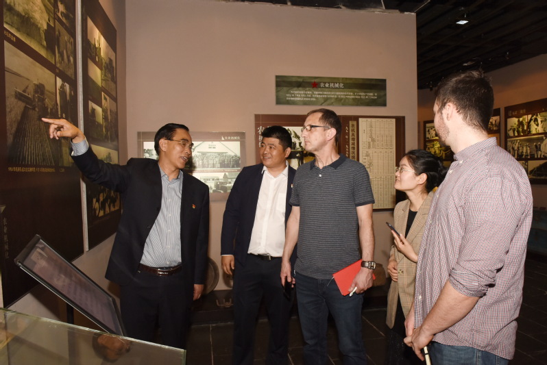 深入推进党史学习教育走深走实,5月19日上午,我们在农建四师陈列馆中看到,有2名中德作物生产与农业技术示范园的德国专家在翻译的陪同下,也随着党支部20多名党员一起,来到淮海农场红色教育基地,体验党史学习和军垦传统文化实境教育之旅活动,感受时下火热的“红色教育”。