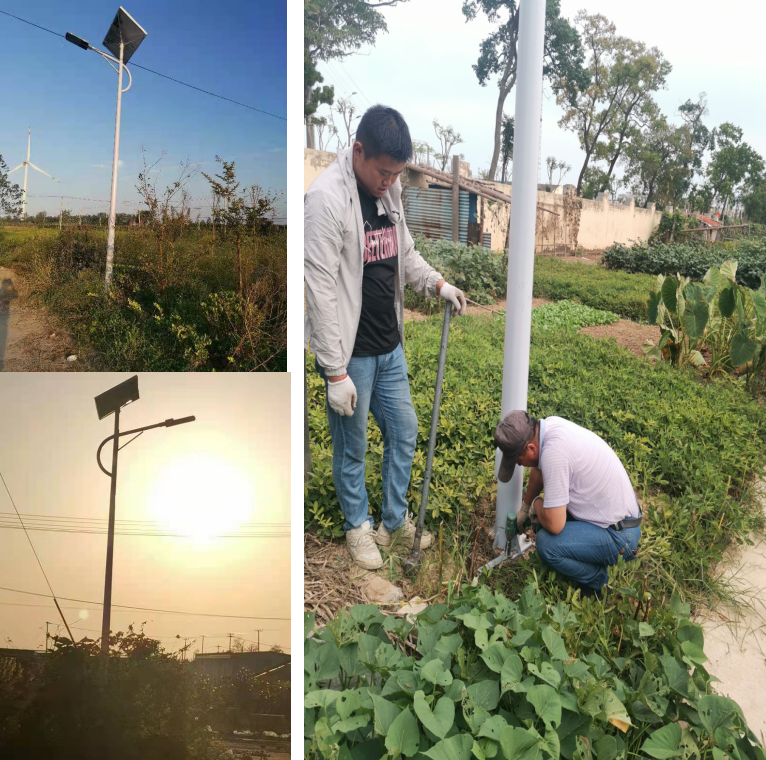 为了切实解决好居住在分场和大队居民夜晚照明的问题,农场公司规划设计部门按照农场公司领导的部署,通过投资40多万元“为群众办实事”的项目工程建设,为有职工居民居住的分场大队特地增设了250盏太阳能路灯,实现了有人集中居住居民小区的路灯全覆盖,让大家晚上还可以放心地散步、跑步健身和出行。图为施工人员正在埋设照明灯杆和照明太阳能路灯安装好的镜头。