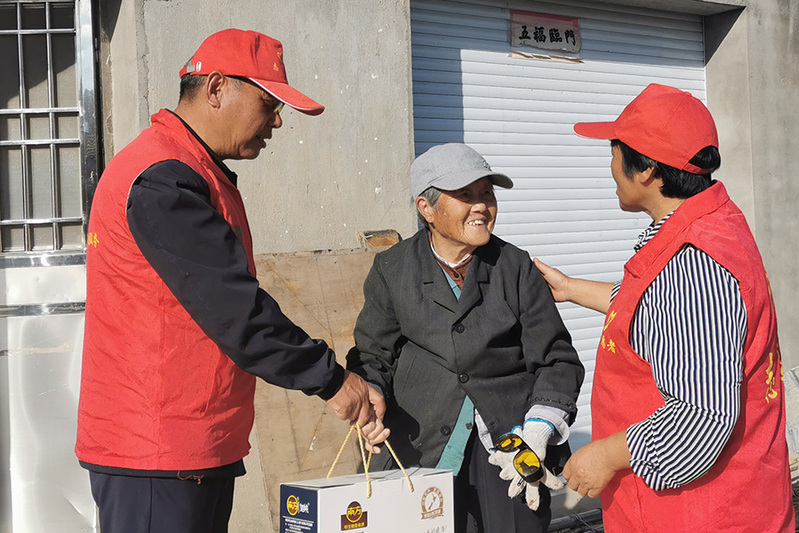 活动前,分队长马建春向志愿者分队成员阐述了此次活动的重要意义,并将志愿者们分为三个小组,带着农场公司党委领导的嘱托,分别探望了场域内部分80岁以上、子女不在身边的老人,为老人们送上慰问和祝福。