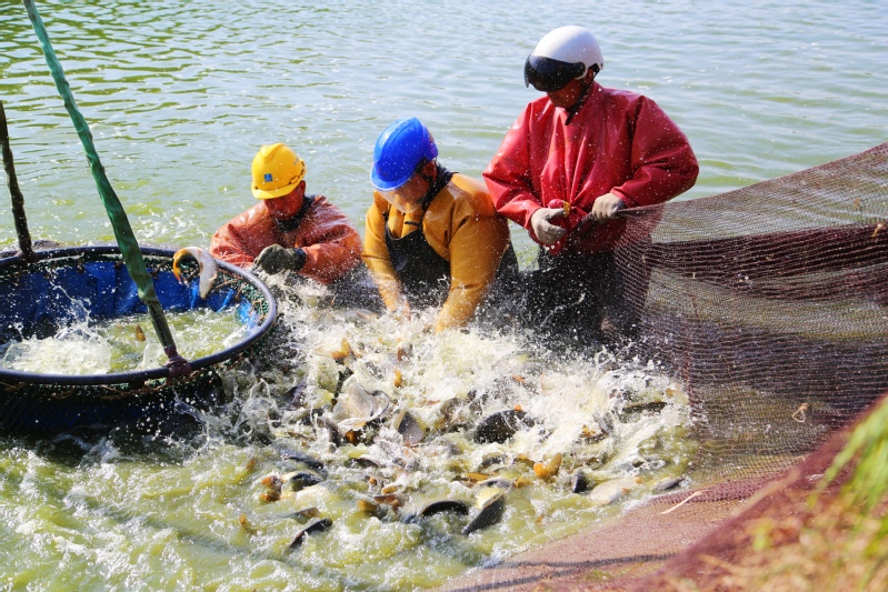 走进岗埠农场北渔场,大型吊车配合捕鱼工人们正在进行拉网作业,收获的鲤鱼经过分拣销往湖北等地。连日来,水产市场行情走俏,岗埠农场加紧捕捞各类水产品,切实满足市场供应。据悉,当日共捕捞鲤鱼3万余斤,销售额近20万元。