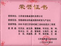 公司先后获国家火炬计划重点高新技术企业、江苏省高新技术企业,国家二级企业, 江苏省名牌产品企业、江苏省著名商标企业、省双文明单位,江苏省计量保证确认单位、江苏省AAA资信企业、江苏省环境保护先进企业、 江苏省重合同守信用企业等称号。“金象”牌减速机,先后获得了省部优产品,国家机械工业部科技进步二等奖,机械工业部“可靠性考核特别推荐产品”,SJDCY结晶机专用减速机、边缘传动磨机减速器 、蜗轮齿轮双级减速器、PR模块式减速器、立式磨机减速器和同轴式圆柱齿轮减速器等先后通过了省级鉴定,并分别获得了 江苏省和淮安市科技进步奖二等奖和三等奖。2002年3月通过ISO9001:2000质量管理体系认证。有自营进出口权。