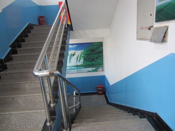 图为活动中心在每个楼梯口均设置了灭火箱