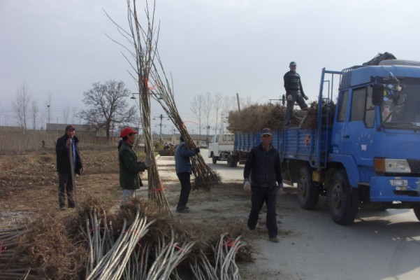 图为3月11日下午连云港市来场购运树苗的场面。