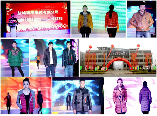 模特走秀是新品发布会的亮点,德孚服饰公司今年开发的近200个羽绒服新款,由10名男、女模特在T型台上进行了走秀表演,那一款款款式新颖、色彩亮丽、做工考究的男、女羽绒服吸引了与会者的眼球,让人耳目一新无不目不转睛地盯着,生怕有什么遗漏。