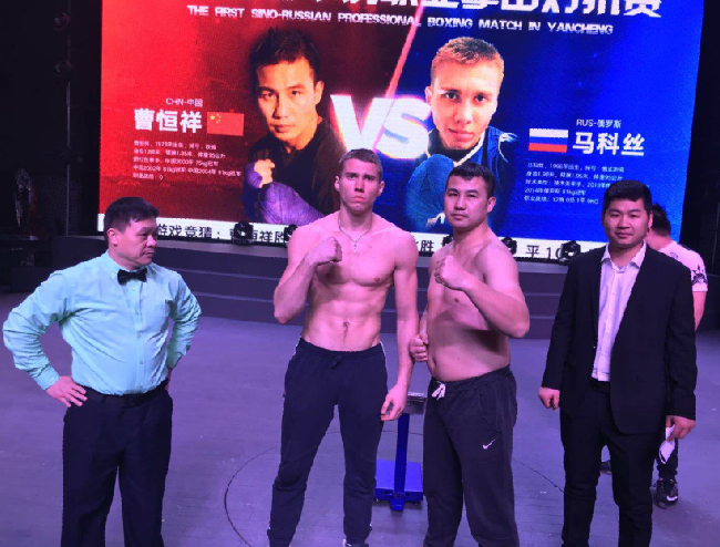 1月6日夜晚,2018首届【强岑杯】中俄职业拳击对抗赛在盐城市鸿运大舞台开赛,淮海农场职工子女、40岁的曹恒祥与俄罗斯选手、21岁马科丝经过四轮艰苦的角逐,最终打成了平手。这项赛事在盐城的举办,也为全国的广大拳击爱好者欣赏到了一台精彩的国际拳击赛事。