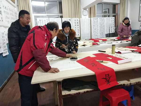 学员董兵说:“写春联不仅可以宣传当今新生活,还能表达自己的祝福,我在社区工作十多年了,没想到还能够换一种方式为居民服务,真是有意义的事。”刚上两节课的新学员张云说:“我是这里基础最差的了,也跟着他们练练,说不准过年也能自己写春联呢!”