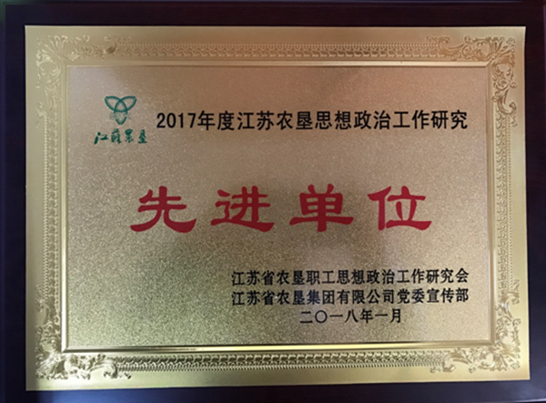 1月14日,在江苏农垦2017年度政研会年会暨思想政治工作会议上,苏舜公司荣获2017年度垦区思想政治工作研究先进单位。