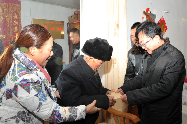 “这是我们带来的慰问金,请老人收下。”说完,王进强就把信封交到了老人的手中。