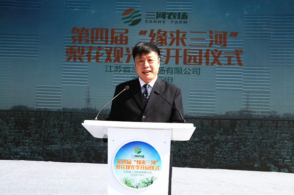 4月8日,三河农场有限公司第四届“缘来三河”梨花观光季活动在三河农场有限公司梨妍花语隆重举行。江苏省国资委监事会主席李海洋、江苏农垦集团公司党委委员、总会计师刘克英、盱眙县委书记梁三元、盱眙县人民政府副县长郑海梁、南京东南大学旅游系主任宣国富、江苏农垦农业发展股份有限公司、江苏省大华种业集团有限公司等单位领导及盱眙部委办局领导等出席开园仪式。