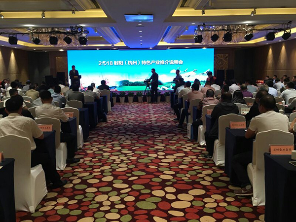 4月20日下午,新洋农场有限公司参加2018射阳(杭州)特色产业推介说明会。总经理助理王煜明出席。百余名客商代表应邀参加活动。 现场4家公司表示近期来新洋进行了项目洽谈。
