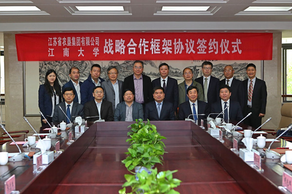 5月7日上午,江苏省农垦集团有限公司与江南大学战略合作签约仪式在无锡举行。江南大学校长陈坚、副校长吴正国,集团公司党委书记、董事长魏红军,总经理胡兆辉,党委委员苏志富等出席签约仪式。魏红军、陈坚分别代表双方在签约仪式上致辞。签约前,江南大学党委书记朱拓会见了魏红军一行。