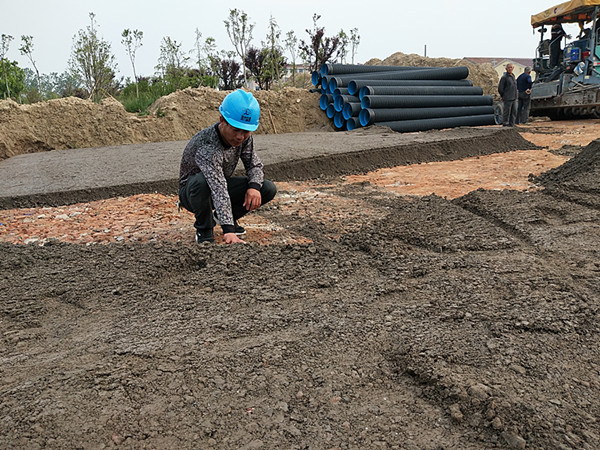 每天天蒙蒙亮,在新洋农场有限公司黄沙港大桥南接线工程的工地上,人们都能看到一个忙碌的身影,个头不高,皮肤黝黑,胡子拉擦,他时而蹲在地上,时而爬上工程车里,仔细查看工程质量,他就是新洋农场有限公司黄沙港大桥接线工程监督员陆首将。