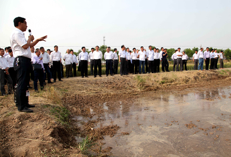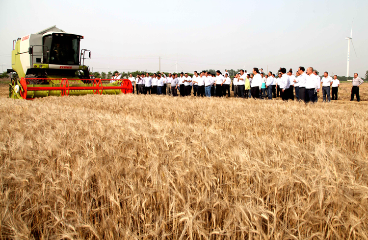 会后,胡兆辉、苏志富率与会人员观摩了黄海分公司农业生产,对黄海分公司农机农艺融合新技术的应用给予高度赞赏。